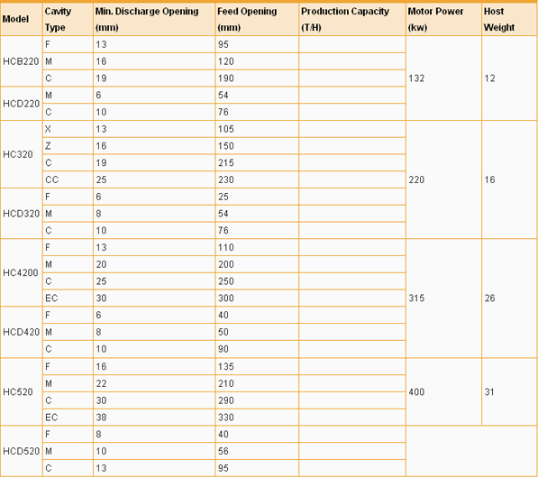HC£¨High Capacity£©Series cone crushers feature a unique combination of crusher speed, throw, and cavity design. This combination has proved revolutionary in providing higher capacity and superior product quality, and in providing a wider range of application suitability. From limestone to taconite, from ballast production to manufactured sand, and from small portable plants, HC cone crushers provide unbeatable performance in secondary, tertiary, and quaternary applications.
