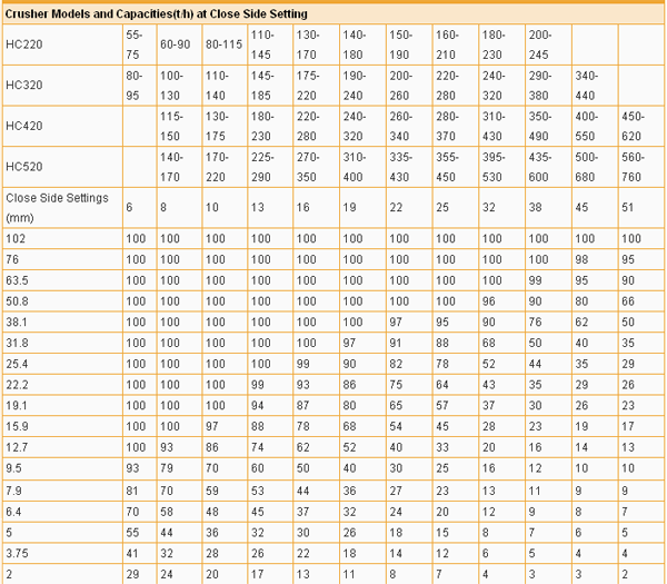 Production Capacity of Different Model of High Capacity Cone Crusher