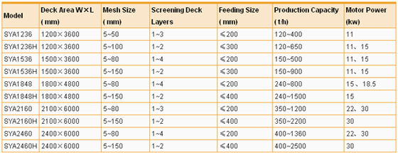 Technical Parameters of SYA Inclined Vibrating Screen
